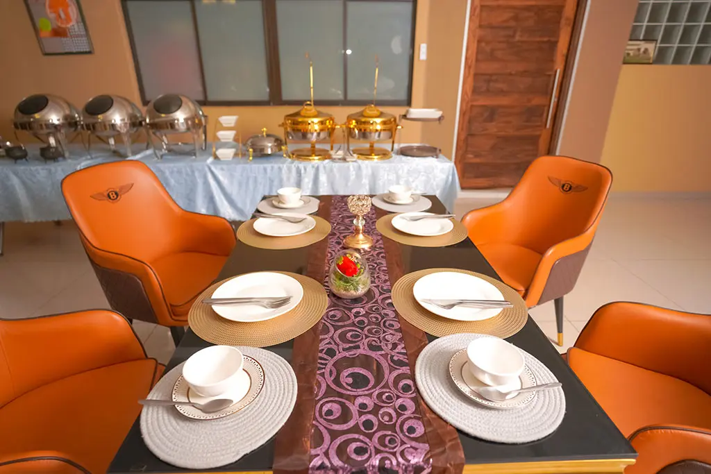 Our dining area of a capacity of 30 features an all you can eat buffet for breakfast, lunch and dinner